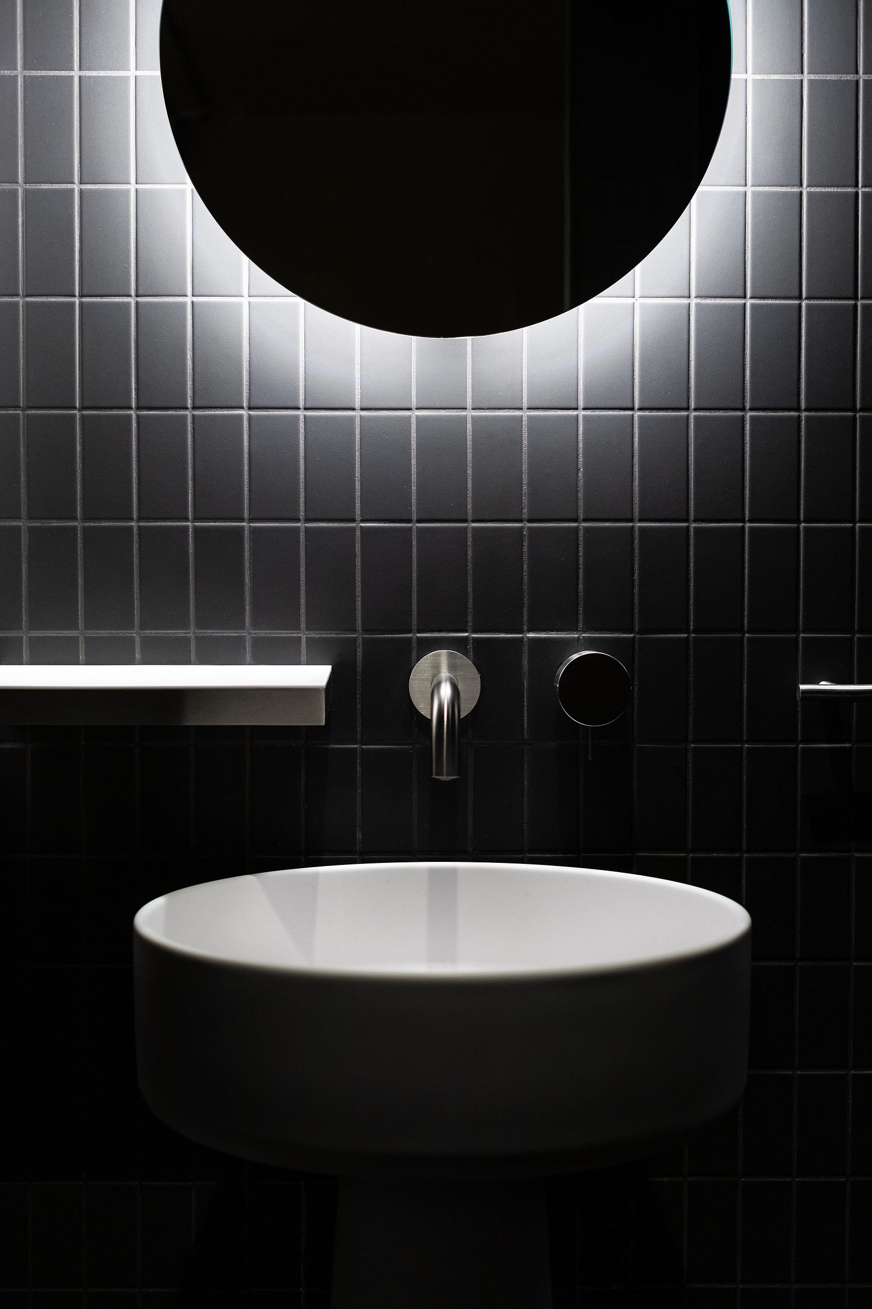 isolated created with moveable glass partitions and curtains. Mirrors are used extensively to amplify the